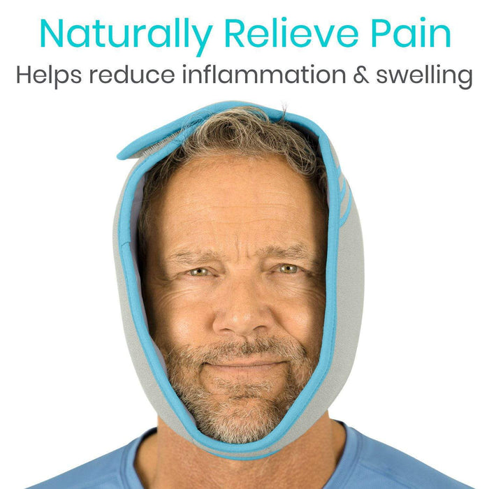 The face ice wrap provides soothing compression to reduce swelling and inflammation and promote natural healing