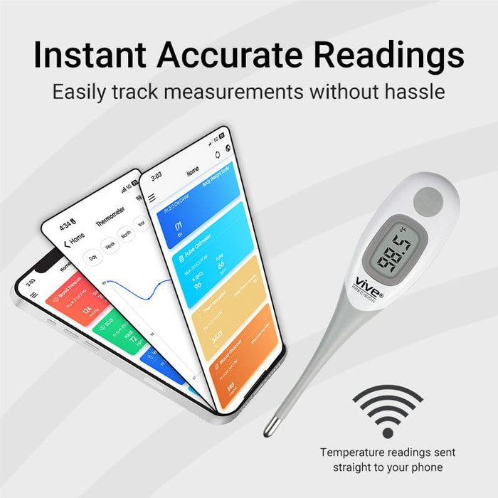Compatible with iOS and Android devices, our smart thermometer syncs with the Vive Precision app for easily tracking and sharing temperature fluctuations